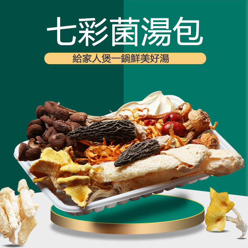 2分鐘前七彩菌湯包,鮮香濃郁,菌體肥嫩,當季乾貨,自然曬乾無硫熏,煲湯首選! - 自然無硫熏,無添加食用更安心! [秋冬 季節必備的七彩野生菌湯包x10=NT$1150 ]